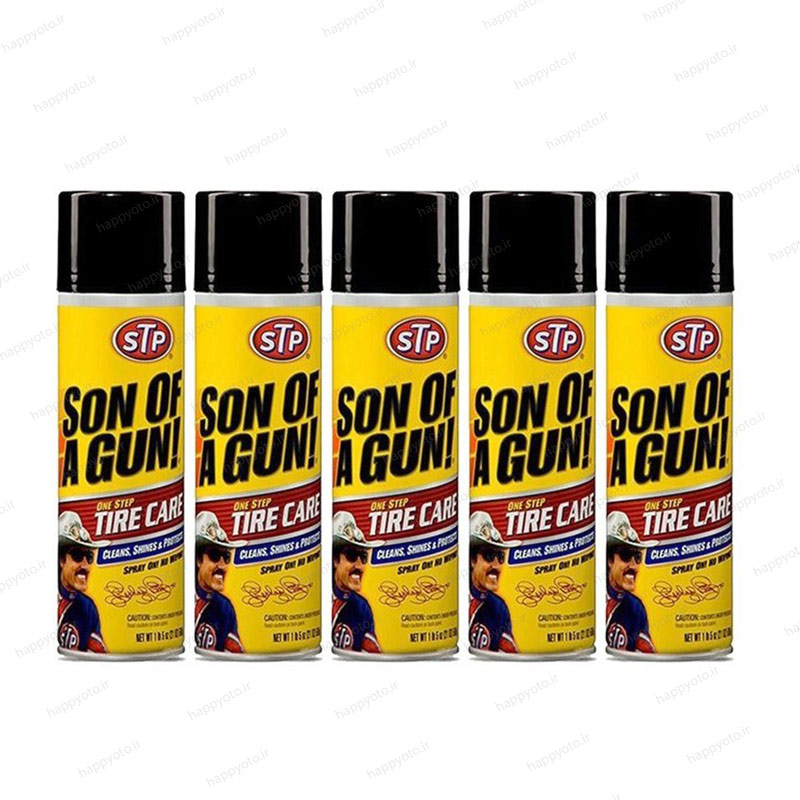 این محصول یک اسپری مراقبت از لاستیک است که توسط برند معروف STP تولید شده است. نام کامل آن    sun of a gun! One Step Tire Care  است که به معنای “مراقبت یک مرحله ای از لاستیک” می‌باشد. هدف اصلی اسپری لاستیک STP ، تمیز کردن، براق کردن و محافظت از لاستیک خودرو در یک مرحله ساده است.